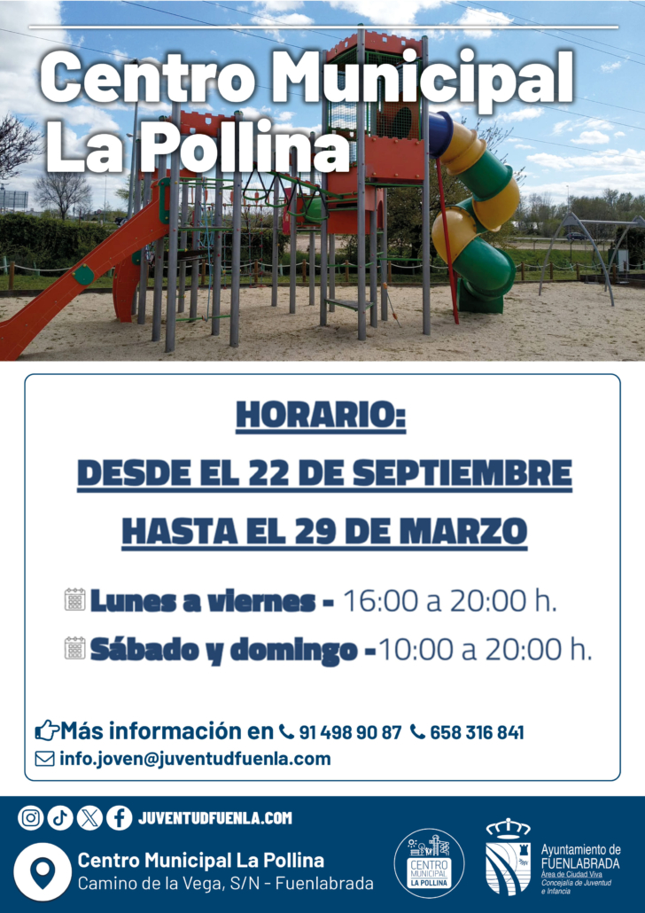Informamos a nuestros usuarios y usuarias que el horario de apertura de las instalaciones del Centro Municipal La Pollina será el siguiente: